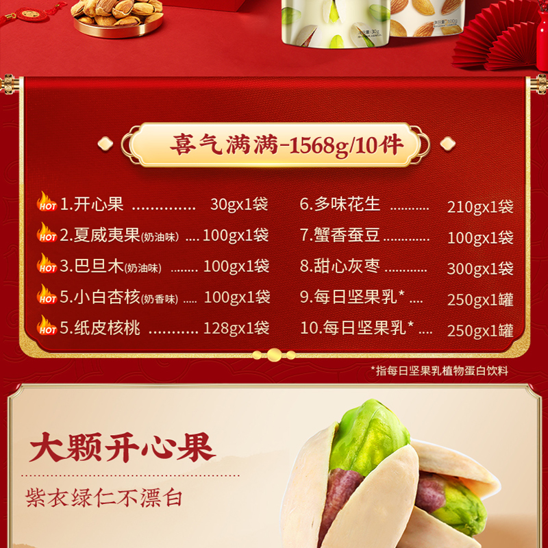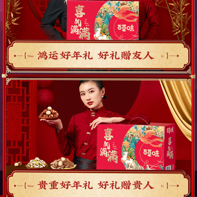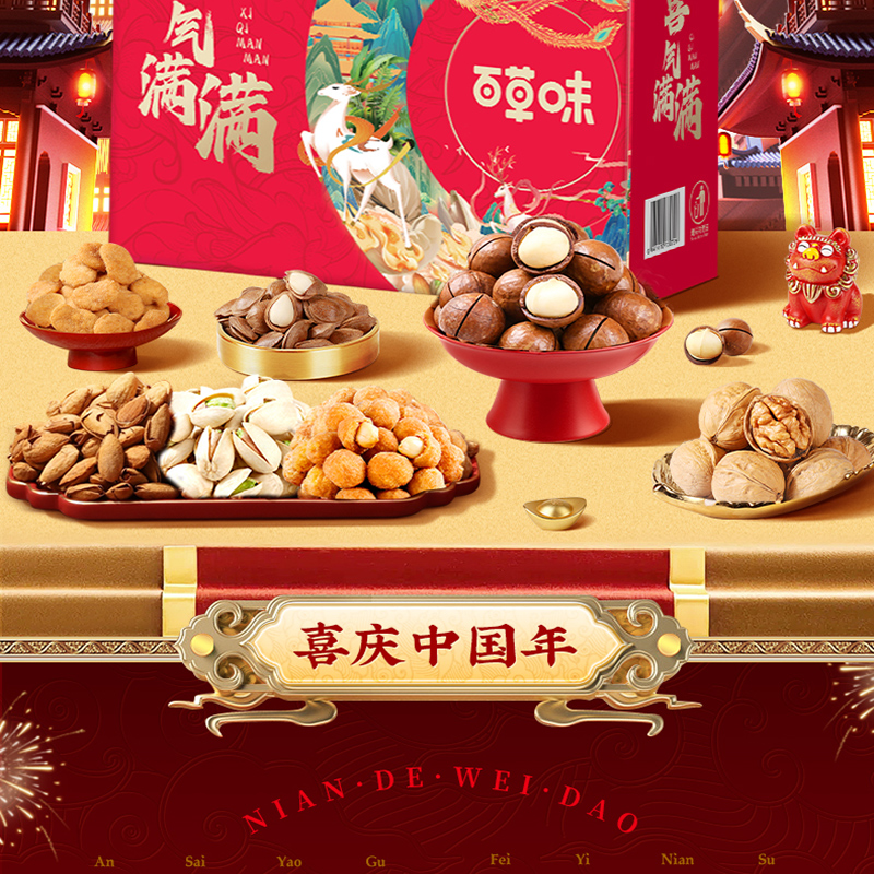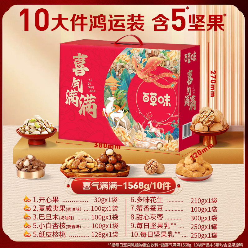 【百草味】喜气满满坚果零食礼包1568g